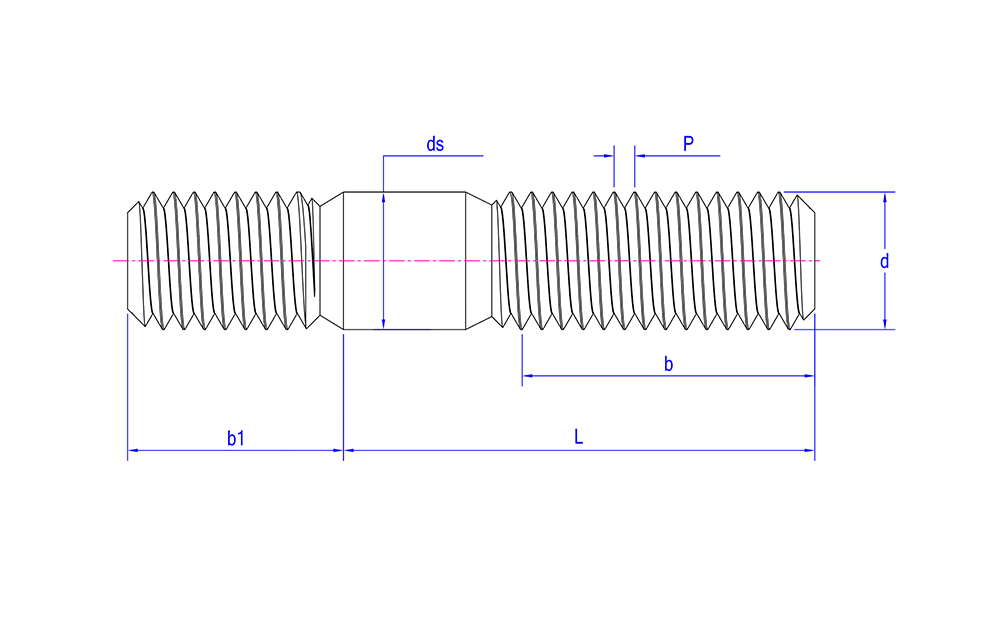 | Megjelenési jellemzők | Hengeres részek mindkét végén menettel, általában fémből, középen menet nélküli résszel |